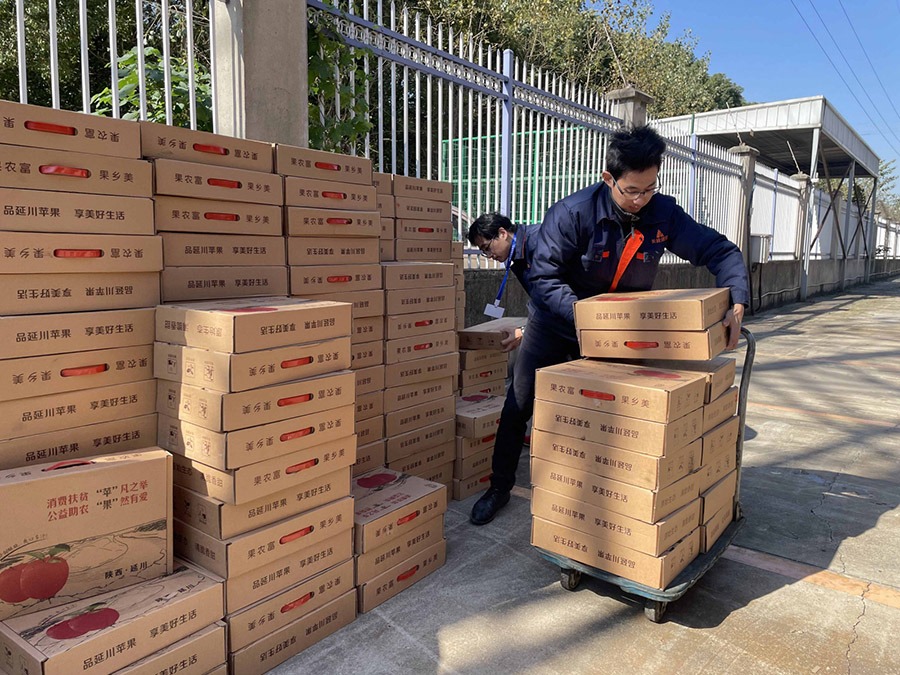 公司将扶贫爱心苹果分发到长龄的每一位员工,大家兴高采烈领取,一是在这个深秋时节,能品尝到正宗的陕西苹果;二是,觉得公司的这个活动很有意义,能够在实际行动上帮助了当地的农民。